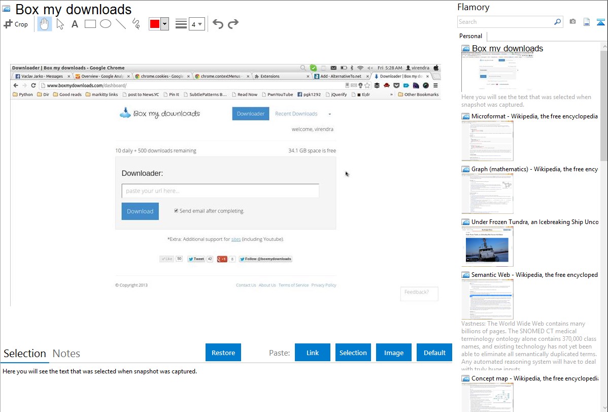 Flamory helps you capture and store screenshots from Box my downloads by pressing a single hotkey. It will be saved to a history, so you can continue doing your tasks without interruptions. Later, you can edit the screenshot: crop, resize, add labels and highlights. After that, you can paste the screenshot into any other document or e-mail message.