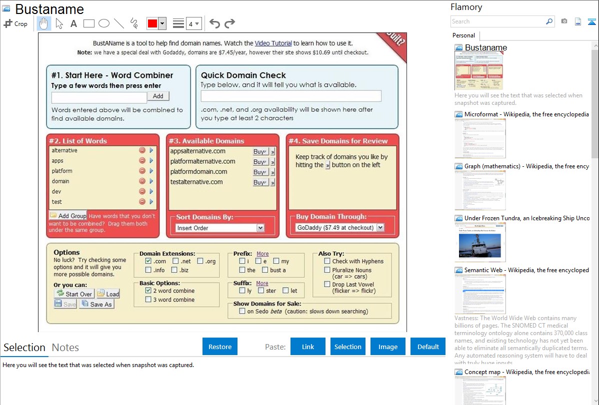 Bust a Name/DomainFriend is a tool to help you find domains and manage them. We have combined linguistic data with a unique interface to let you quickly search through thousands of domains and see which are available.