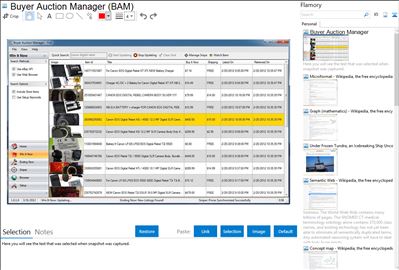 Flamory helps you capture and store screenshots from Buyer Auction Manager (BAM) by pressing a single hotkey. It will be saved to a history, so you can continue doing your tasks without interruptions. Later, you can edit the screenshot: crop, resize, add labels and highlights. After that, you can paste the screenshot into any other document or e-mail message.