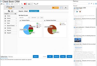 Flamory helps you capture and store screenshots from Client Book CRM by pressing a single hotkey. It will be saved to a history, so you can continue doing your tasks without interruptions. Later, you can edit the screenshot: crop, resize, add labels and highlights. After that, you can paste the screenshot into any other document or e-mail message.