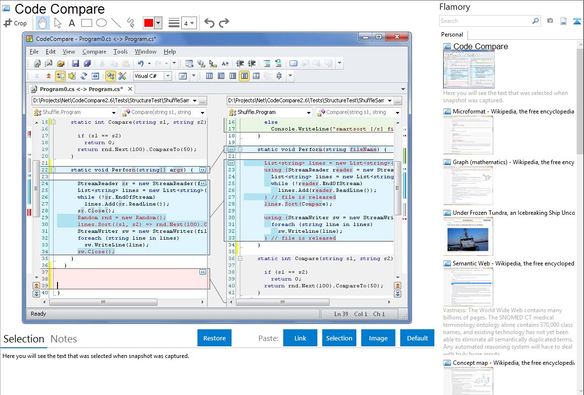 Here is how Code Compare snapshot can look like. Get Flamory and try this on your computer.
