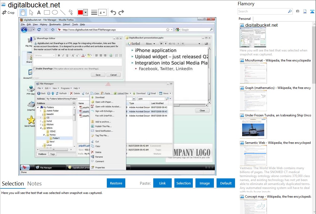 • Automatically copy selected text from digitalbucket.net and save it to Flamory history