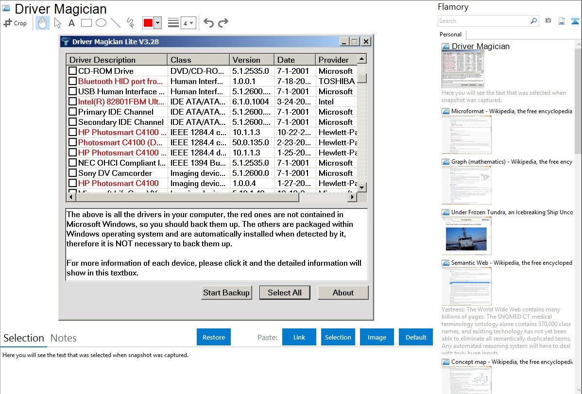 Flamory helps you capture and store screenshots from Driver Magician by pressing a single hotkey. It will be saved to a history, so you can continue doing your tasks without interruptions. Later, you can edit the screenshot: crop, resize, add labels and highlights. After that, you can paste the screenshot into any other document or e-mail message.