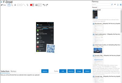 Flamory helps you capture and store screenshots from F-Droid by pressing a single hotkey. It will be saved to a history, so you can continue doing your tasks without interruptions. Later, you can edit the screenshot: crop, resize, add labels and highlights. After that, you can paste the screenshot into any other document or e-mail message.