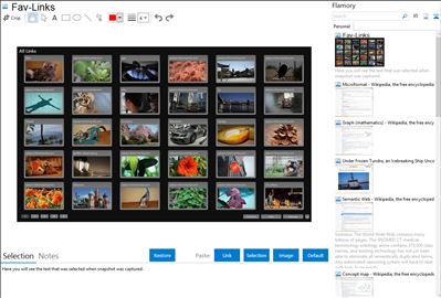 Fav-Links is a free bookmark manager which helps user to visualize and manage bookmarks in a simple and effective way. It works independently from browsers, has hot keys combination, keeps history of your last visits, archiving, option to open bookmarks with different browsers, analytics reports, sync to web, ability to search bookmarks by keywords, ability to open content in overlapped windows and more. Fav-Links "Slides" allow to print screen and save certain areas, sync it to online account, display to other people if needed.