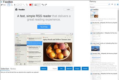 Flamory helps you capture and store screenshots from Feedbin by pressing a single hotkey. It will be saved to a history, so you can continue doing your tasks without interruptions. Later, you can edit the screenshot: crop, resize, add labels and highlights. After that, you can paste the screenshot into any other document or e-mail message.