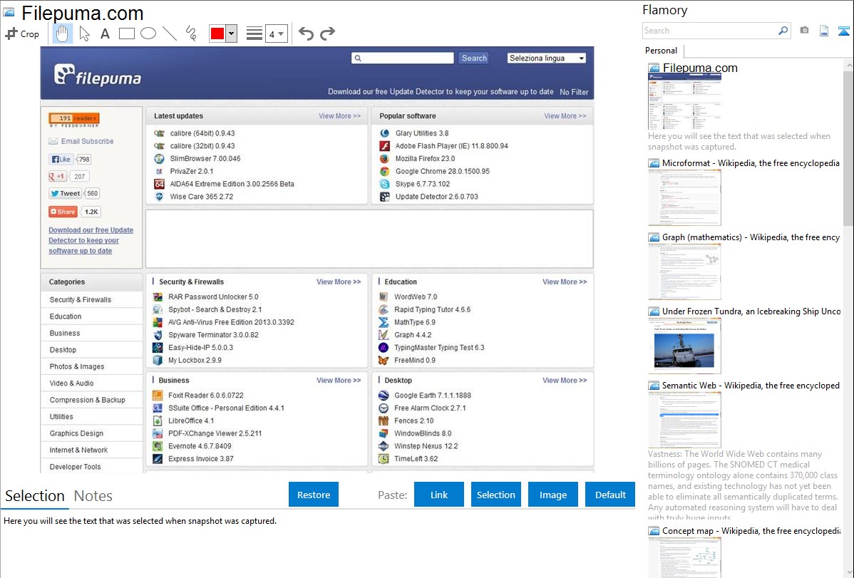 Flamory helps you capture and store screenshots from Filepuma.com by pressing a single hotkey. It will be saved to a history, so you can continue doing your tasks without interruptions. Later, you can edit the screenshot: crop, resize, add labels and highlights. After that, you can paste the screenshot into any other document or e-mail message.