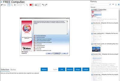 Flamory helps you capture and store screenshots from FREE CompuSec by pressing a single hotkey. It will be saved to a history, so you can continue doing your tasks without interruptions. Later, you can edit the screenshot: crop, resize, add labels and highlights. After that, you can paste the screenshot into any other document or e-mail message.