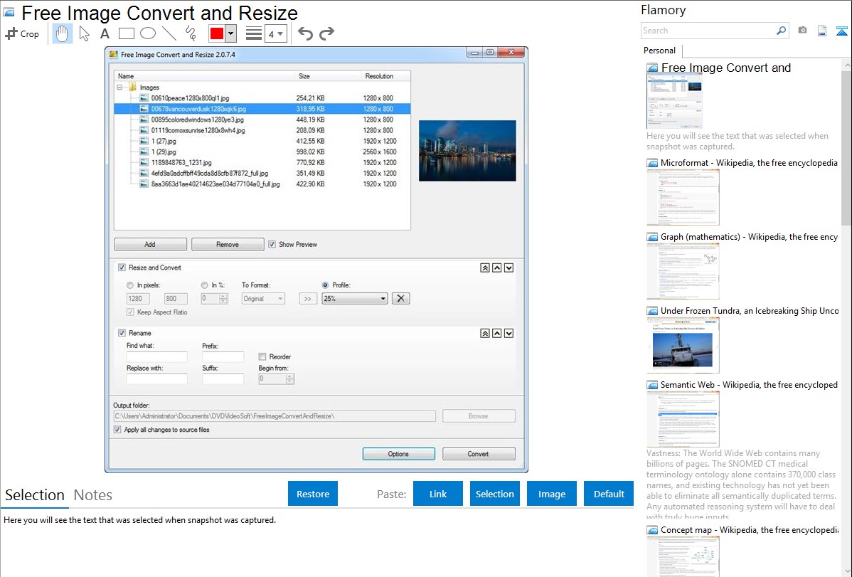 Here is how Free Image Convert and Resize snapshot can look like. Get Flamory and try this on your computer.