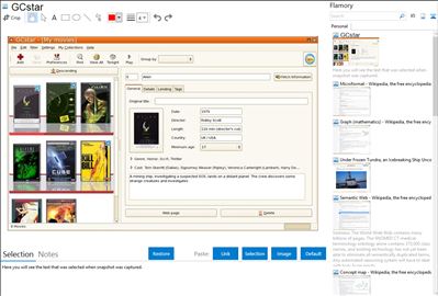 Flamory helps you capture and store screenshots from GCstar by pressing a single hotkey. It will be saved to a history, so you can continue doing your tasks without interruptions. Later, you can edit the screenshot: crop, resize, add labels and highlights. After that, you can paste the screenshot into any other document or e-mail message.