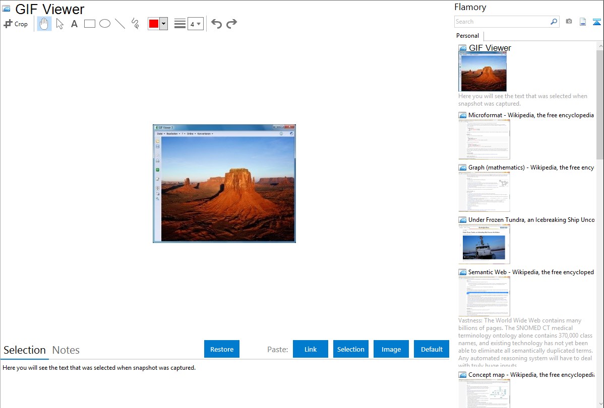 Flamory helps you capture and store screenshots from GIF Viewer by pressing a single hotkey. It will be saved to a history, so you can continue doing your tasks without interruptions. Later, you can edit the screenshot: crop, resize, add labels and highlights. After that, you can paste the screenshot into any other document or e-mail message.