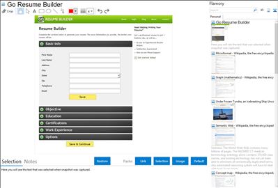 Flamory provides advanced bookmarking for Go Resume Builder. It captures screen, selection, text on the page and other context. You can find this bookmark later using search by page content or looking through thumbnail list.