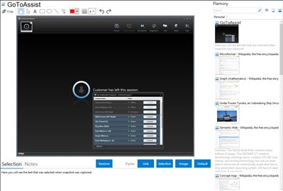 Flamory helps you capture and store screenshots from GoToAssist by pressing a single hotkey. It will be saved to a history, so you can continue doing your tasks without interruptions. Later, you can edit the screenshot: crop, resize, add labels and highlights. After that, you can paste the screenshot into any other document or e-mail message.