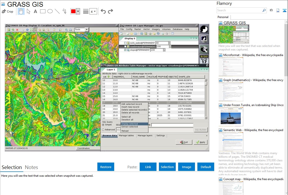 Flamory helps you capture and store screenshots from GRASS GIS by pressing a single hotkey. It will be saved to a history, so you can continue doing your tasks without interruptions. Later, you can edit the screenshot: crop, resize, add labels and highlights. After that, you can paste the screenshot into any other document or e-mail message.