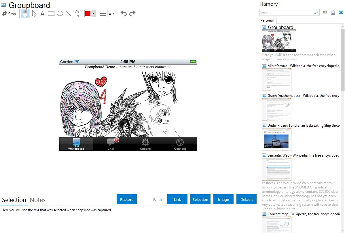 Flamory helps you capture and store screenshots from Groupboard by pressing a single hotkey. It will be saved to a history, so you can continue doing your tasks without interruptions. Later, you can edit the screenshot: crop, resize, add labels and highlights. After that, you can paste the screenshot into any other document or e-mail message.