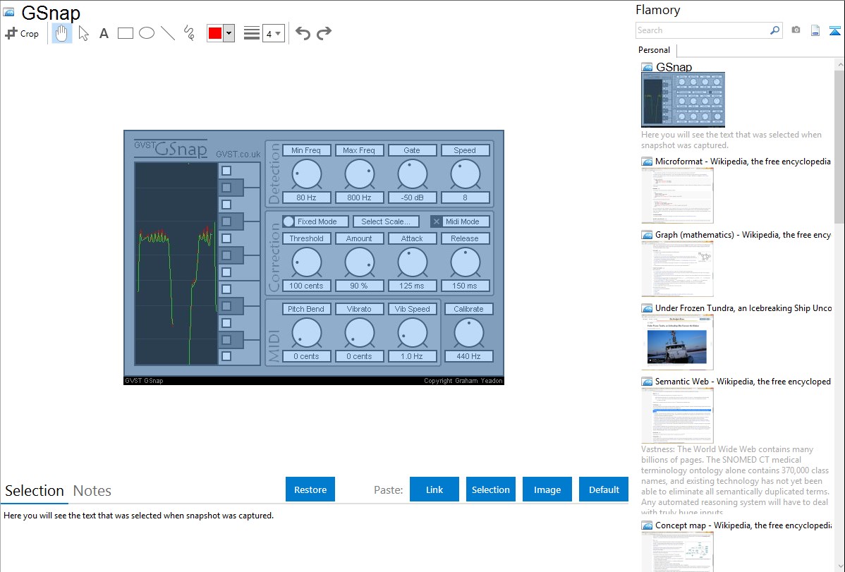 Flamory helps you capture and store screenshots from GSnap by pressing a single hotkey. It will be saved to a history, so you can continue doing your tasks without interruptions. Later, you can edit the screenshot: crop, resize, add labels and highlights. After that, you can paste the screenshot into any other document or e-mail message.