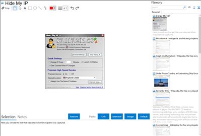 Flamory helps you capture and store screenshots from Hide My IP by pressing a single hotkey. It will be saved to a history, so you can continue doing your tasks without interruptions. Later, you can edit the screenshot: crop, resize, add labels and highlights. After that, you can paste the screenshot into any other document or e-mail message.