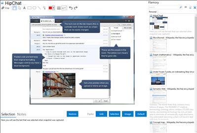 Flamory helps you capture and store screenshots from HipChat by pressing a single hotkey. It will be saved to a history, so you can continue doing your tasks without interruptions. Later, you can edit the screenshot: crop, resize, add labels and highlights. After that, you can paste the screenshot into any other document or e-mail message.