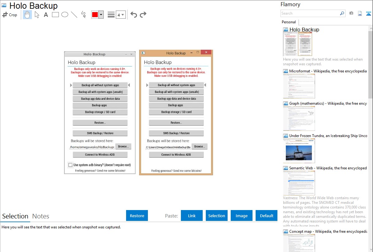 Flamory helps you capture and store screenshots from Holo Backup by pressing a single hotkey. It will be saved to a history, so you can continue doing your tasks without interruptions. Later, you can edit the screenshot: crop, resize, add labels and highlights. After that, you can paste the screenshot into any other document or e-mail message.