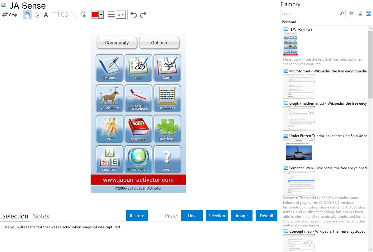 Flamory helps you capture and store screenshots from JA Sense by pressing a single hotkey. It will be saved to a history, so you can continue doing your tasks without interruptions. Later, you can edit the screenshot: crop, resize, add labels and highlights. After that, you can paste the screenshot into any other document or e-mail message.