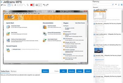 Flamory helps you capture and store screenshots from JetBrains MPS by pressing a single hotkey. It will be saved to a history, so you can continue doing your tasks without interruptions. Later, you can edit the screenshot: crop, resize, add labels and highlights. After that, you can paste the screenshot into any other document or e-mail message.
