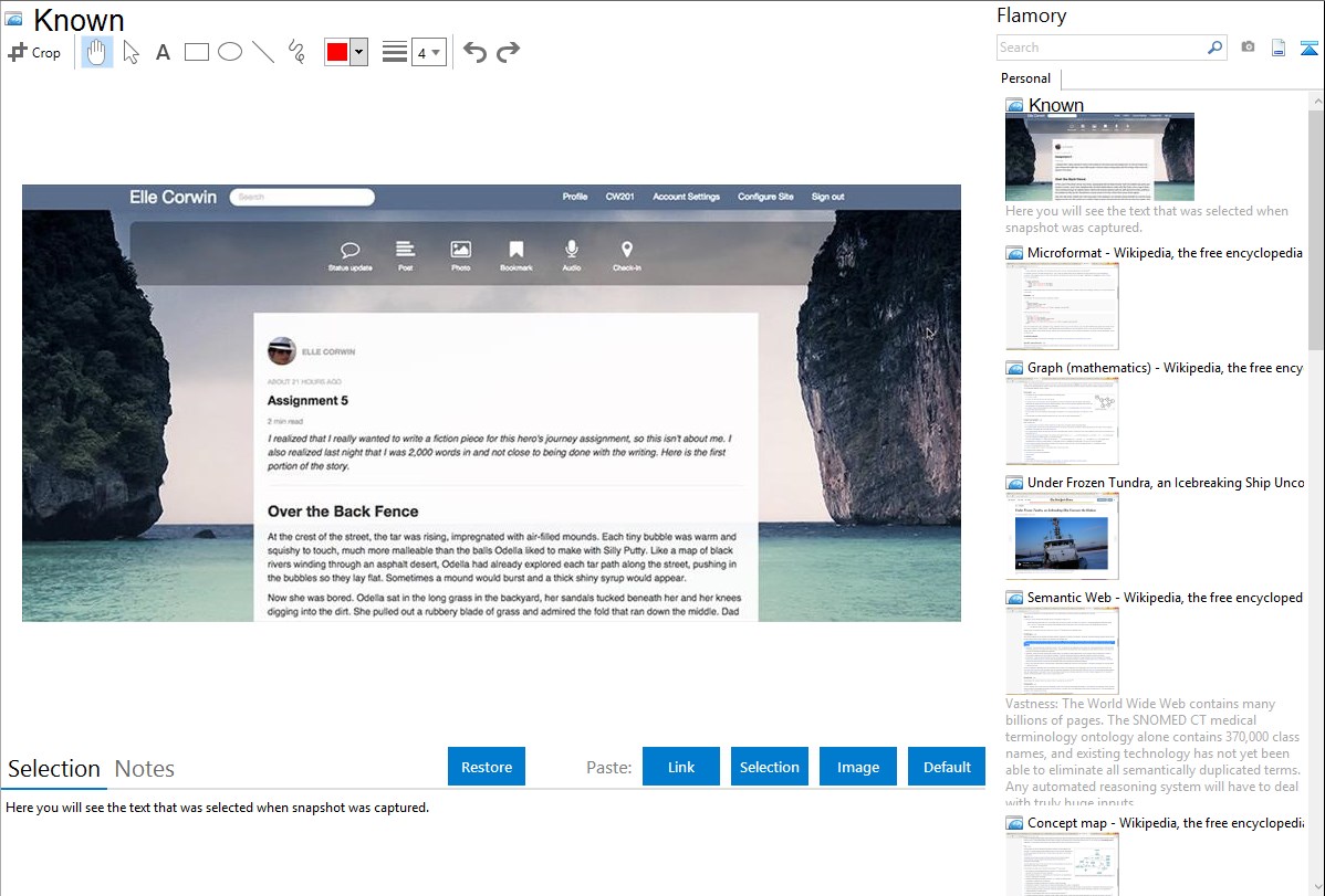 Flamory helps you capture and store screenshots from Known by pressing a single hotkey. It will be saved to a history, so you can continue doing your tasks without interruptions. Later, you can edit the screenshot: crop, resize, add labels and highlights. After that, you can paste the screenshot into any other document or e-mail message.