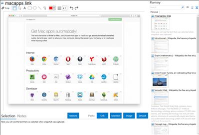 Flamory helps you capture and store screenshots from macapps.link by pressing a single hotkey. It will be saved to a history, so you can continue doing your tasks without interruptions. Later, you can edit the screenshot: crop, resize, add labels and highlights. After that, you can paste the screenshot into any other document or e-mail message.