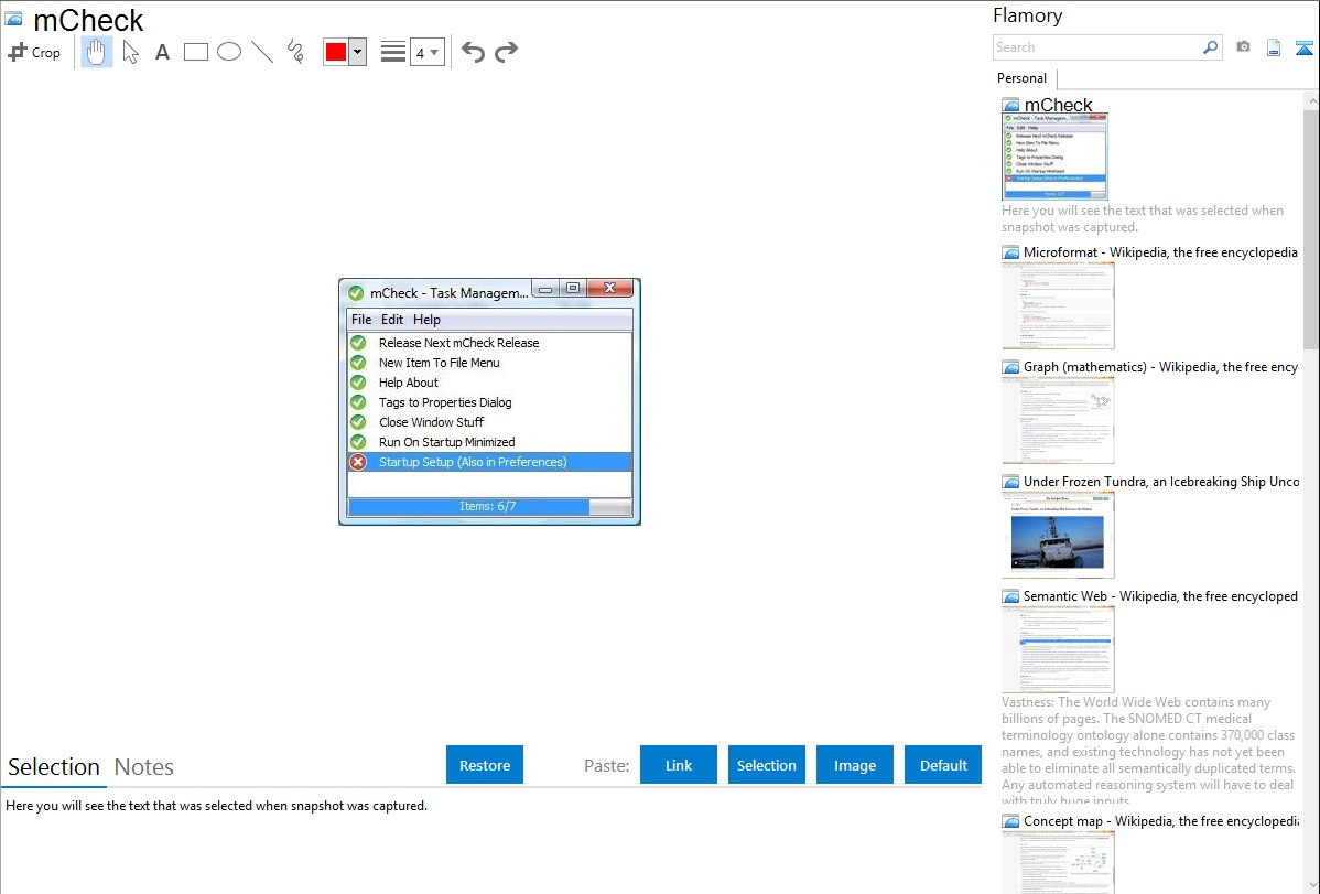 Flamory helps you capture and store screenshots from mCheck by pressing a single hotkey. It will be saved to a history, so you can continue doing your tasks without interruptions. Later, you can edit the screenshot: crop, resize, add labels and highlights. After that, you can paste the screenshot into any other document or e-mail message.
