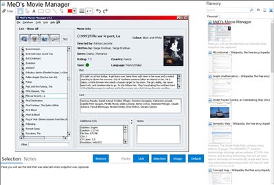 Flamory helps you capture and store screenshots from MeD's Movie Manager by pressing a single hotkey. It will be saved to a history, so you can continue doing your tasks without interruptions. Later, you can edit the screenshot: crop, resize, add labels and highlights. After that, you can paste the screenshot into any other document or e-mail message.