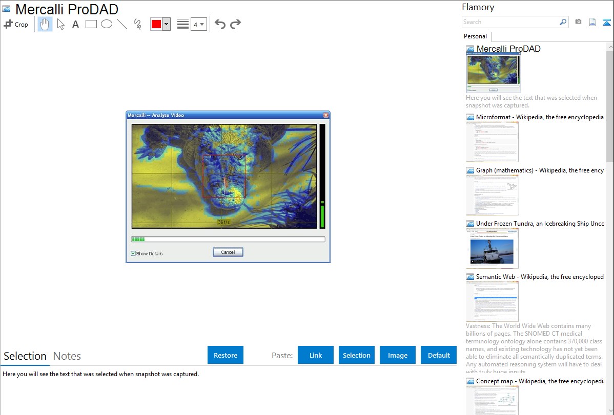 Flamory provides advanced bookmarking for Mercalli ProDAD. It captures screen, selection, text of the document and other context. You can find this bookmark later using search by document content or looking through thumbnail list.
