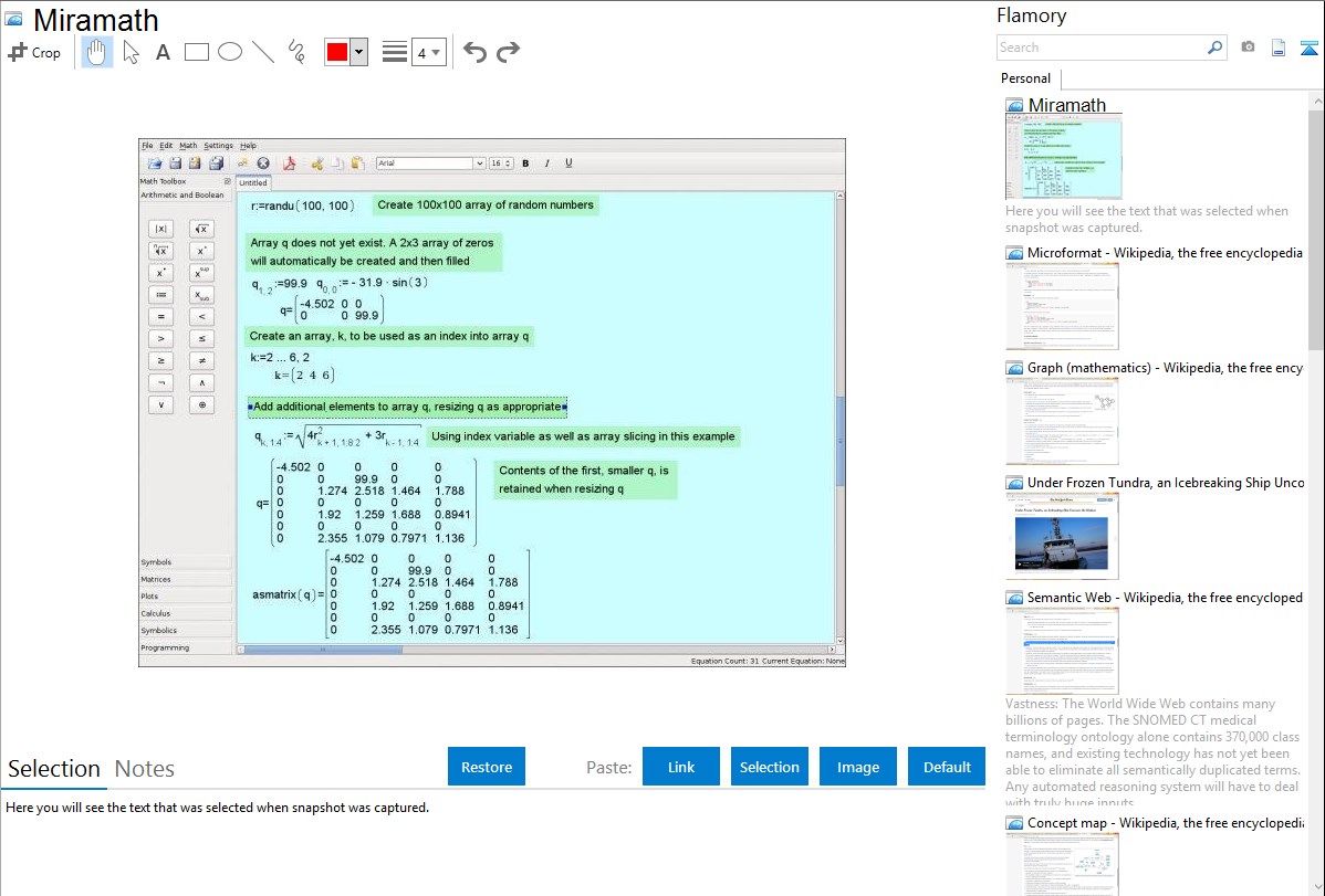 Flamory helps you capture and store screenshots from Miramath by pressing a single hotkey. It will be saved to a history, so you can continue doing your tasks without interruptions. Later, you can edit the screenshot: crop, resize, add labels and highlights. After that, you can paste the screenshot into any other document or e-mail message.