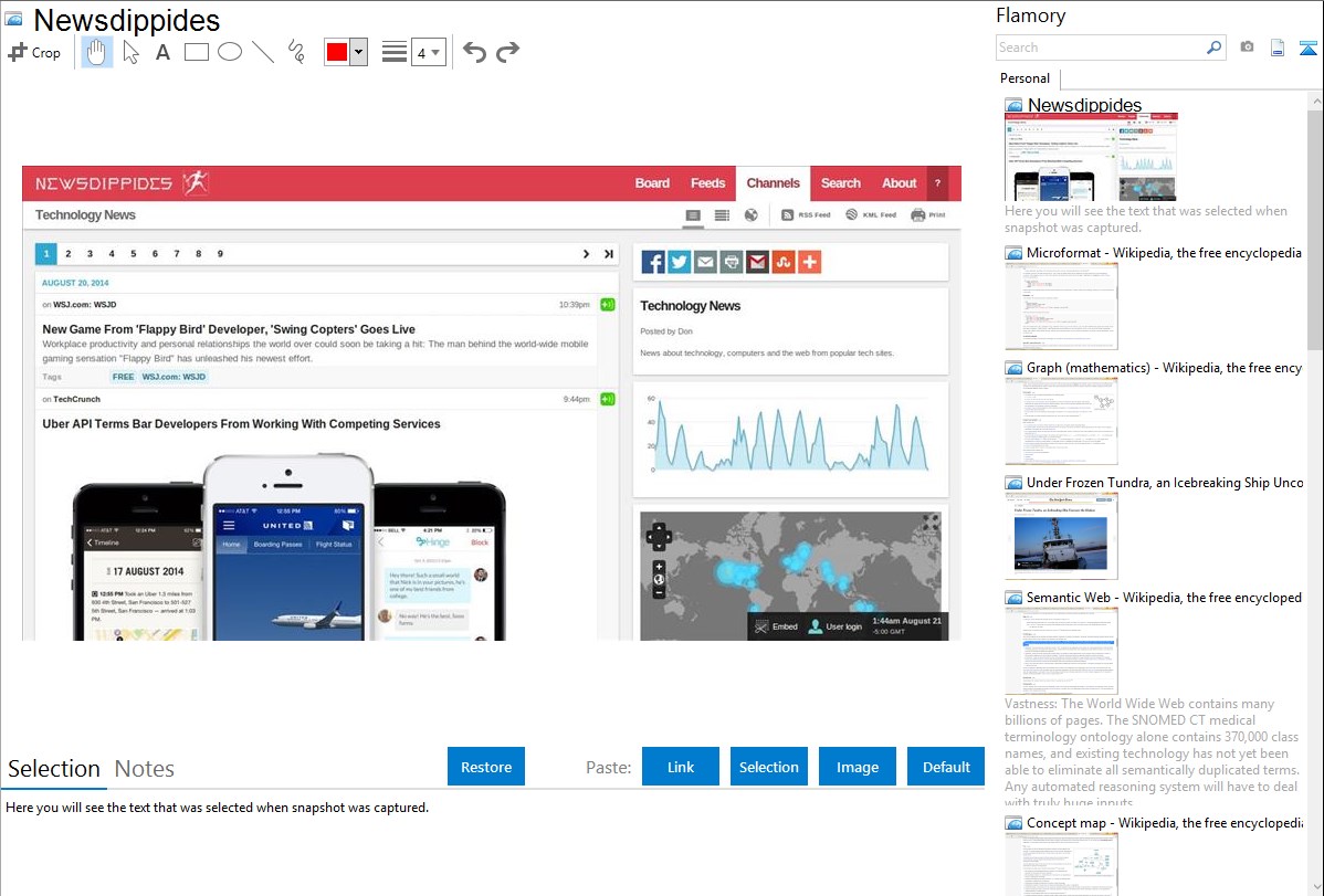 Flamory helps you capture and store screenshots from Newsdippides by pressing a single hotkey. It will be saved to a history, so you can continue doing your tasks without interruptions. Later, you can edit the screenshot: crop, resize, add labels and highlights. After that, you can paste the screenshot into any other document or e-mail message.