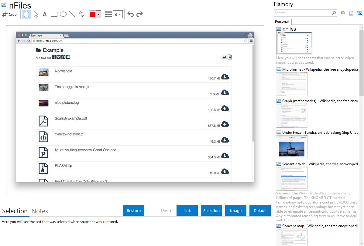 Flamory helps you capture and store screenshots from nFiles by pressing a single hotkey. It will be saved to a history, so you can continue doing your tasks without interruptions. Later, you can edit the screenshot: crop, resize, add labels and highlights. After that, you can paste the screenshot into any other document or e-mail message.
