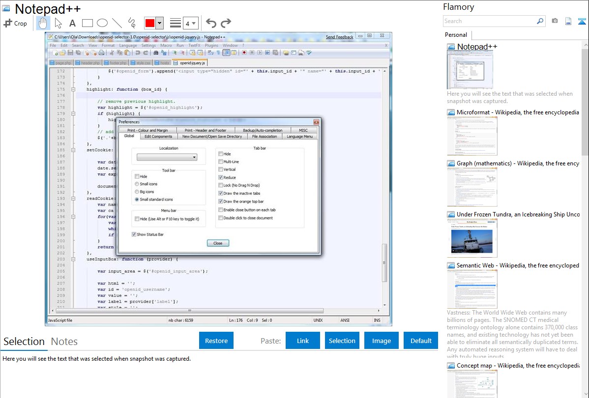 Flamory helps you capture and store screenshots from Notepad++ by pressing a single hotkey. It will be saved to a history, so you can continue doing your tasks without interruptions. Later, you can edit the screenshot: crop, resize, add labels and highlights. After that, you can paste the screenshot into any other document or e-mail message.
