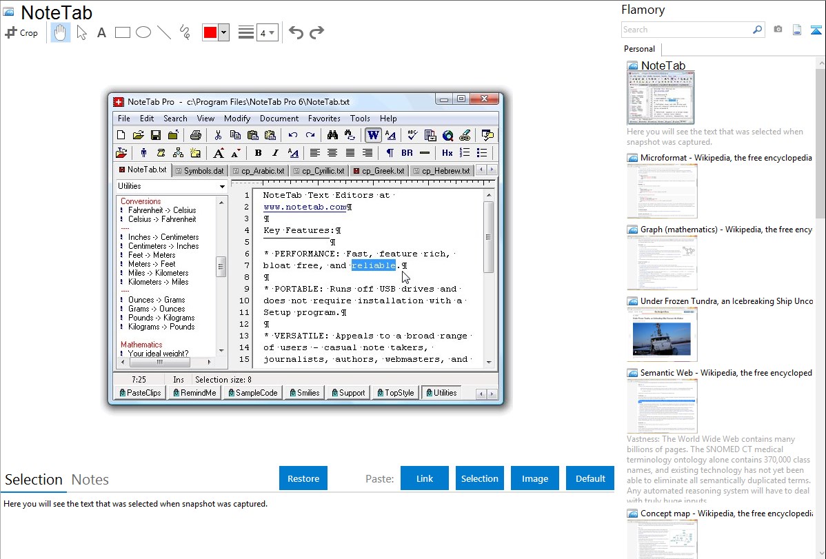Here is how NoteTab snapshot can look like. Get Flamory and try this on your computer.