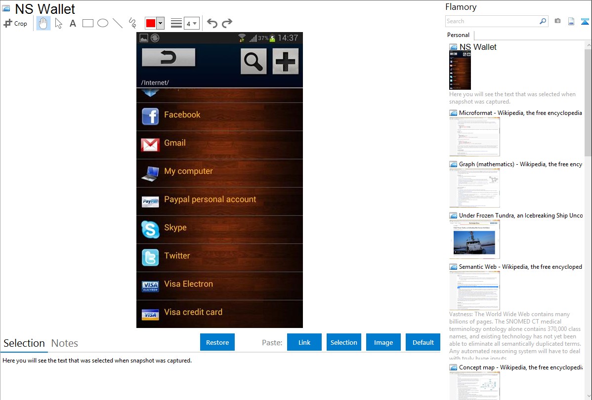 Flamory helps you capture and store screenshots from NS Wallet by pressing a single hotkey. It will be saved to a history, so you can continue doing your tasks without interruptions. Later, you can edit the screenshot: crop, resize, add labels and highlights. After that, you can paste the screenshot into any other document or e-mail message.