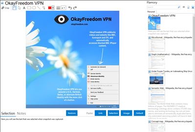 Flamory helps you capture and store screenshots from OkayFreedom VPN by pressing a single hotkey. It will be saved to a history, so you can continue doing your tasks without interruptions. Later, you can edit the screenshot: crop, resize, add labels and highlights. After that, you can paste the screenshot into any other document or e-mail message.