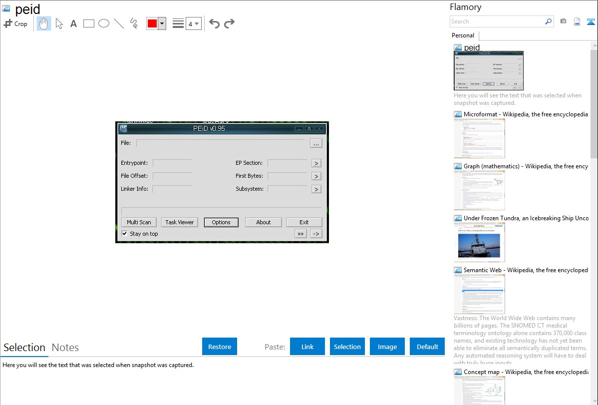 Here is how peid snapshot can look like. Get Flamory and try this on your computer.
