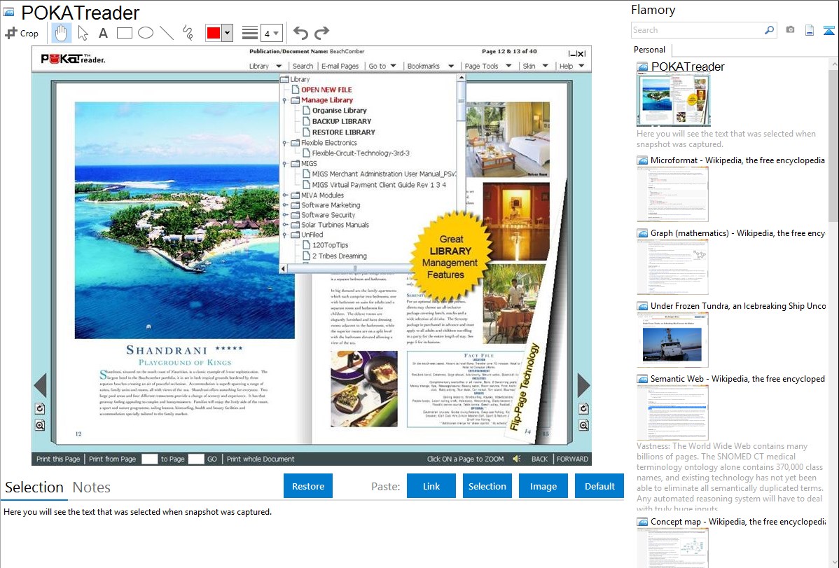 Flamory helps you capture and store screenshots from POKATreader by pressing a single hotkey. It will be saved to a history, so you can continue doing your tasks without interruptions. Later, you can edit the screenshot: crop, resize, add labels and highlights. After that, you can paste the screenshot into any other document or e-mail message.