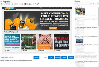 Flamory helps you capture and store screenshots from Poptent by pressing a single hotkey. It will be saved to a history, so you can continue doing your tasks without interruptions. Later, you can edit the screenshot: crop, resize, add labels and highlights. After that, you can paste the screenshot into any other document or e-mail message.