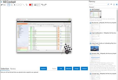 Flamory helps you capture and store screenshots from SECockpit by pressing a single hotkey. It will be saved to a history, so you can continue doing your tasks without interruptions. Later, you can edit the screenshot: crop, resize, add labels and highlights. After that, you can paste the screenshot into any other document or e-mail message.