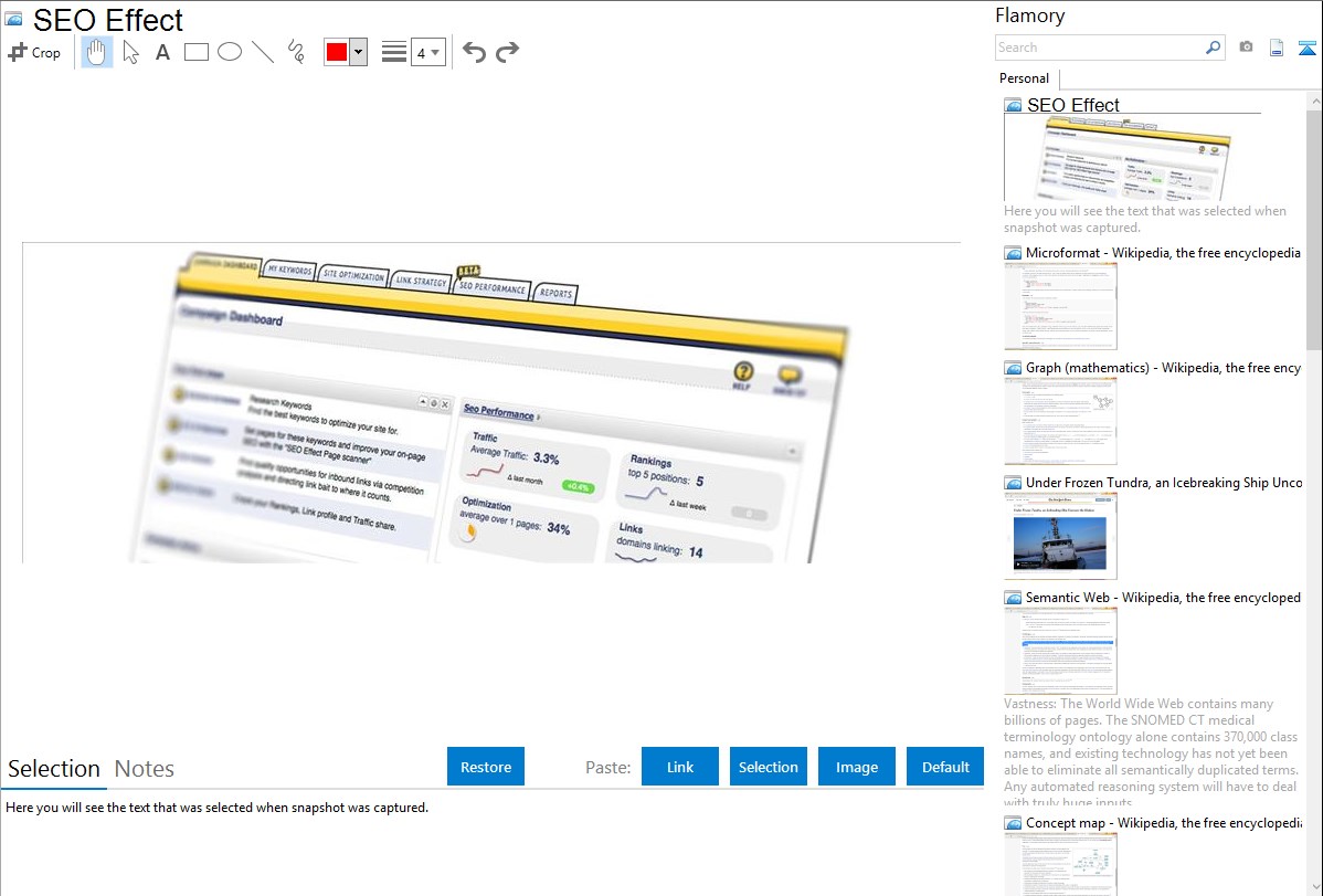 Flamory helps you capture and store screenshots from SEO Effect by pressing a single hotkey. It will be saved to a history, so you can continue doing your tasks without interruptions. Later, you can edit the screenshot: crop, resize, add labels and highlights. After that, you can paste the screenshot into any other document or e-mail message.