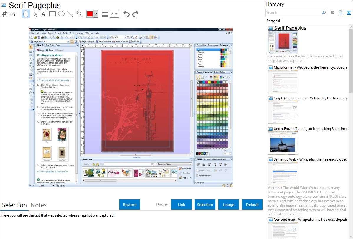 Here is how Serif Pageplus snapshot can look like. Get Flamory and try this on your computer.