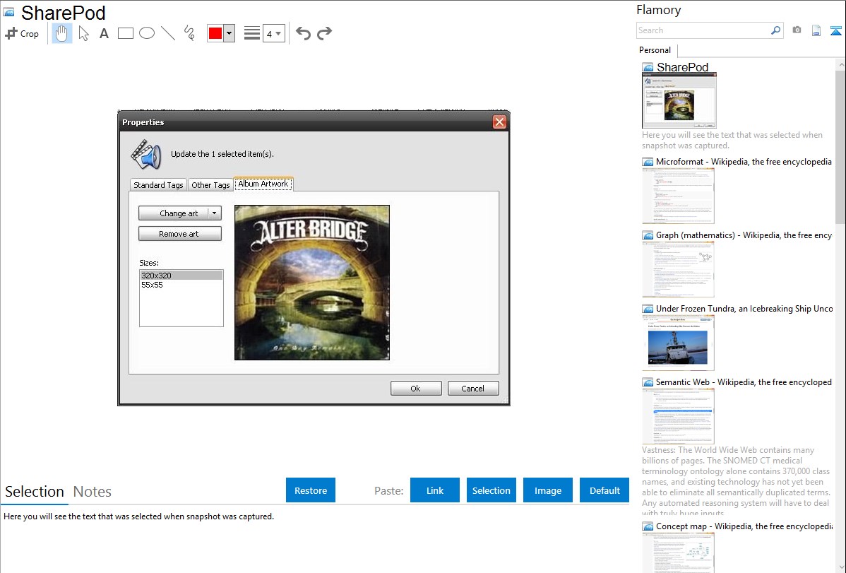 • Automatically copy selected text from SharePod and save it to Flamory history