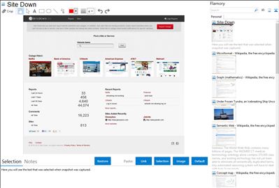 Flamory helps you capture and store screenshots from Site Down by pressing a single hotkey. It will be saved to a history, so you can continue doing your tasks without interruptions. Later, you can edit the screenshot: crop, resize, add labels and highlights. After that, you can paste the screenshot into any other document or e-mail message.