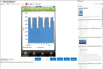 Flamory helps you capture and store screenshots from SiteCatalyst by pressing a single hotkey. It will be saved to a history, so you can continue doing your tasks without interruptions. Later, you can edit the screenshot: crop, resize, add labels and highlights. After that, you can paste the screenshot into any other document or e-mail message.