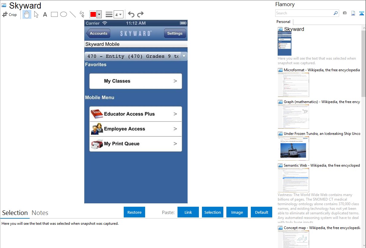 Flamory helps you capture and store screenshots from Skyward by pressing a single hotkey. It will be saved to a history, so you can continue doing your tasks without interruptions. Later, you can edit the screenshot: crop, resize, add labels and highlights. After that, you can paste the screenshot into any other document or e-mail message.