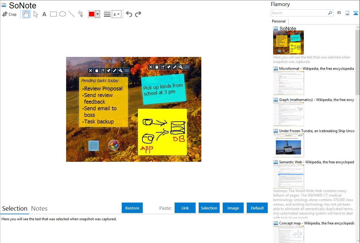 • Automatically copy selected text from SoNote and save it to Flamory history