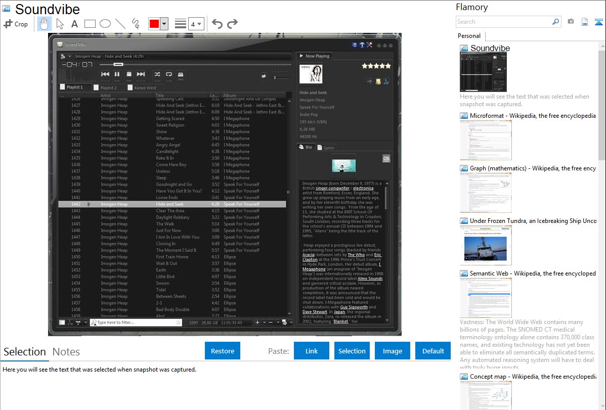Flamory helps you capture and store screenshots from Soundvibe by pressing a single hotkey. It will be saved to a history, so you can continue doing your tasks without interruptions. Later, you can edit the screenshot: crop, resize, add labels and highlights. After that, you can paste the screenshot into any other document or e-mail message.