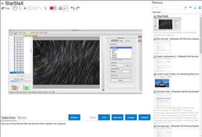 Flamory helps you capture and store screenshots from StarStaX by pressing a single hotkey. It will be saved to a history, so you can continue doing your tasks without interruptions. Later, you can edit the screenshot: crop, resize, add labels and highlights. After that, you can paste the screenshot into any other document or e-mail message.